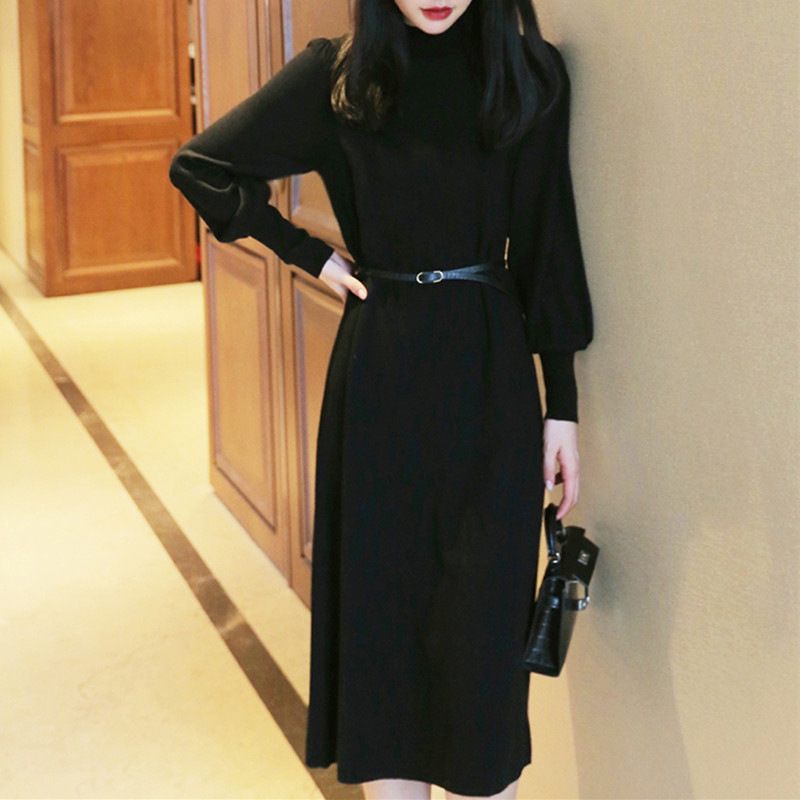 2023 Jednofarebné Temperamentné Pletené Šaty Dámske Spodné Zapínanie V Páse V Strednej Dĺžke