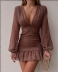 2023 Temperamentný Pulóver S Potlačou Do Polovice Pása Ružové Šifónové Šaty