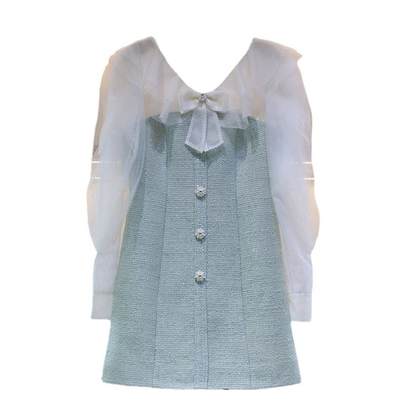 2023 V-výstrih Sieťovina Volániky Jednoradové S Vysokým Pásom S Dlhým Rukávom Žakárové Ležérne Šaty Pre Ženy
