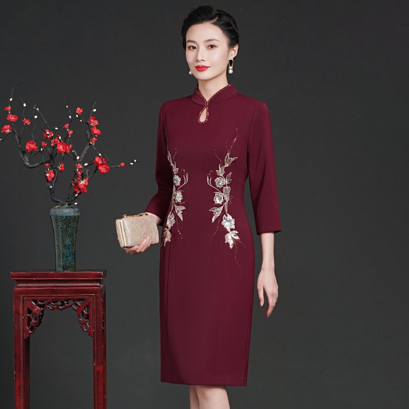 2023 Vznešená A Dôstojná Dvojdielna Súprava Vylepšených Vyšívaných Šiat Cheongsamom