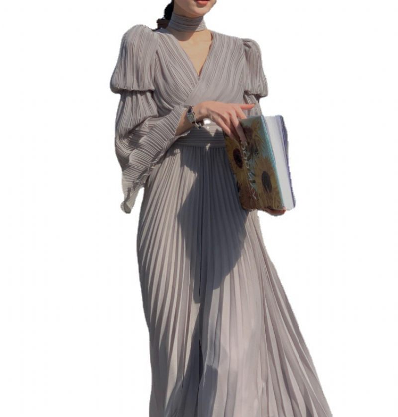 Biele Dámske Šaty S Výstrihom Do V Kvalitná Sukňa S Dlhým Rukávom