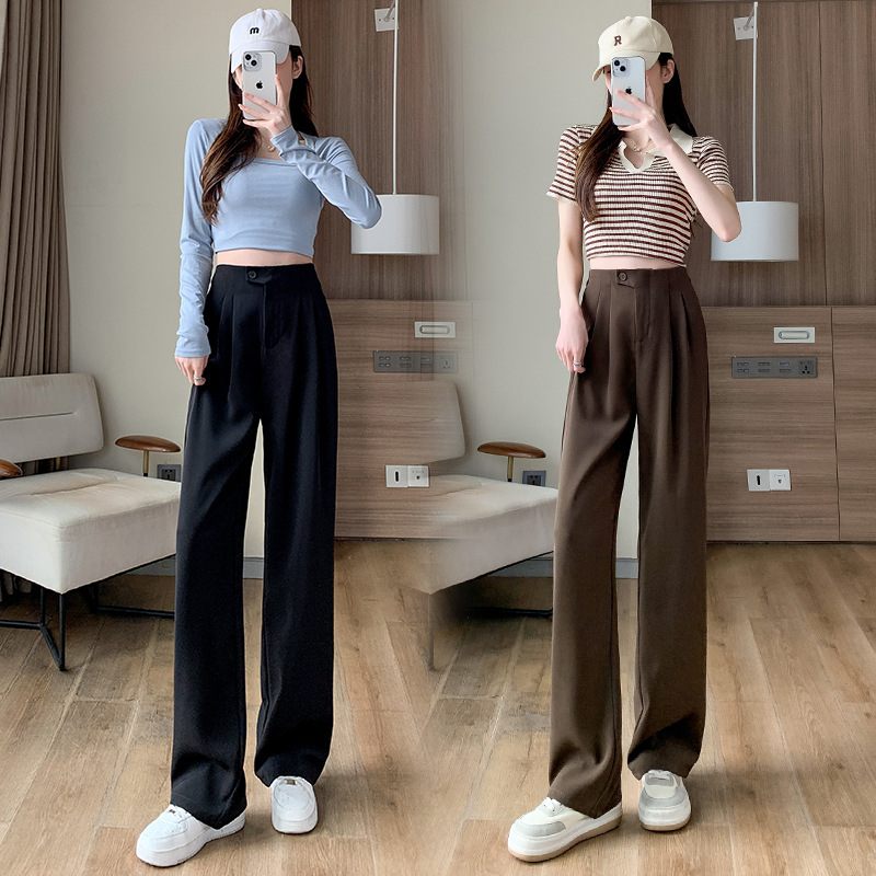 Čierne Široké Nohavice Dámske Rovné S Vysokým Pásom Ležérne