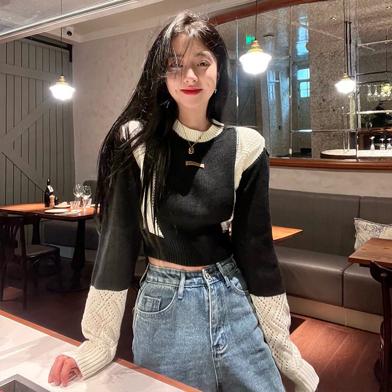 Čierno-biely Farebne Ladiaci Sveter Jar 2023 Nový Dámsky Vydlabaný Pletený Bez Ramienok