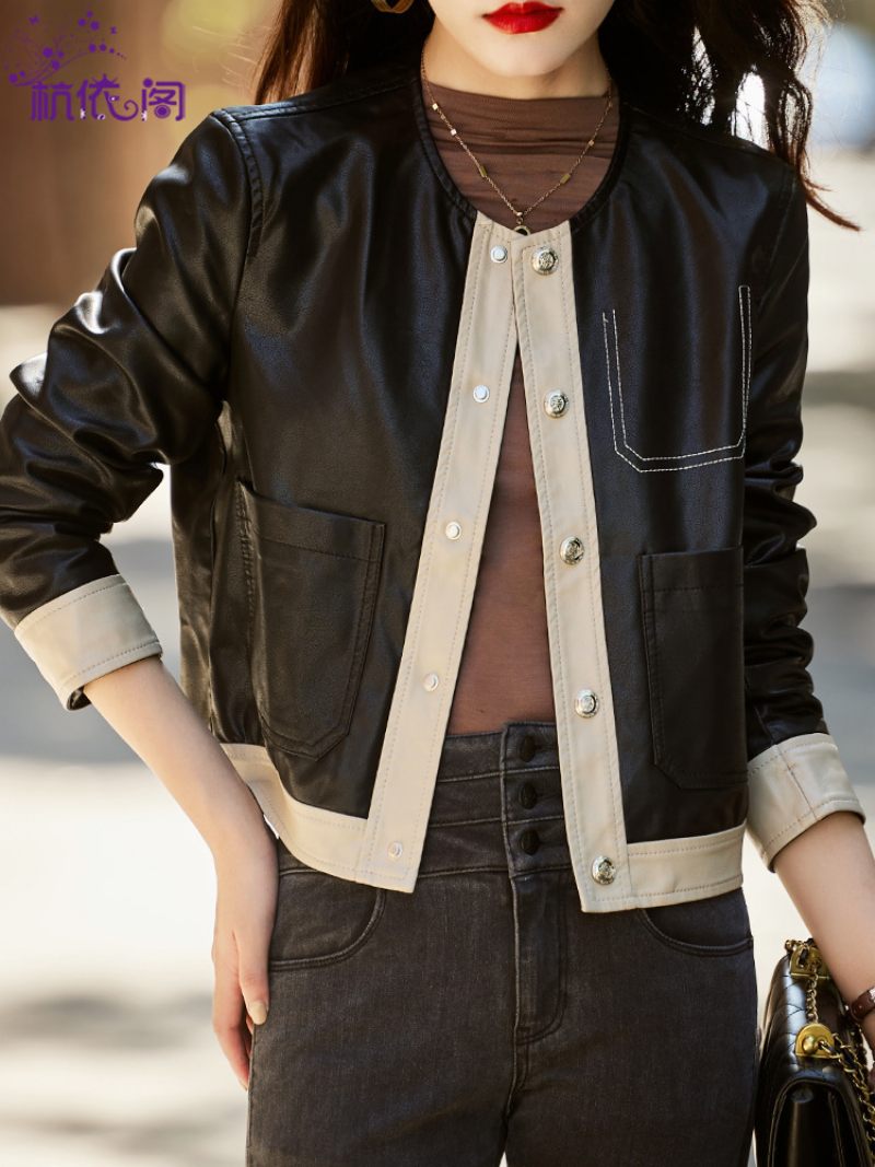 Dámska Kožená Bunda 2023 Krátke Ležérne Módne Topy