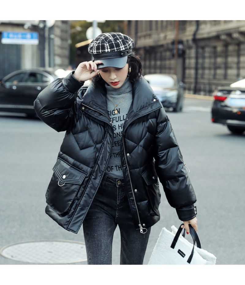 Dámska Krátka Páperová Bunda V Módnom Lesklom Kabáte
