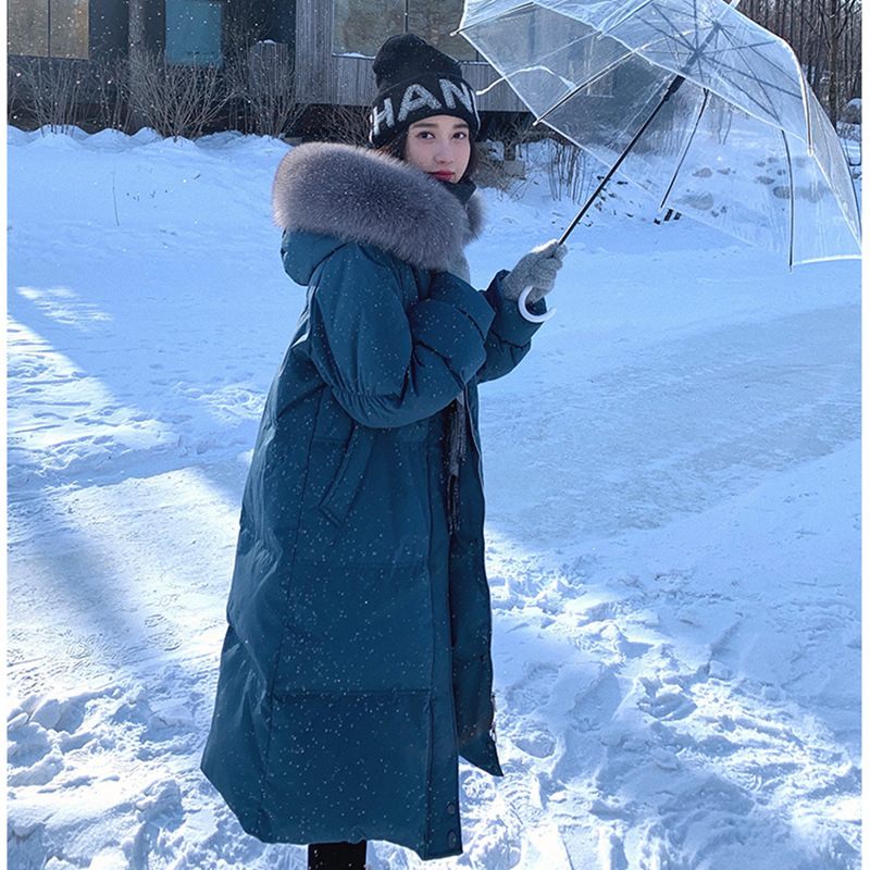 Dámska Páperová Bunda 2023 Nová Hrubá S Dlhým Golierom Pod Kolená
