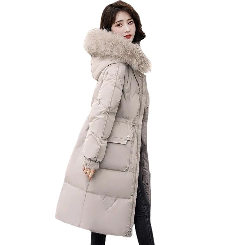 Dámska Páperová Bunda 2023 V Páse Po Kolená So Zahusteným Kožušinovým Golierom