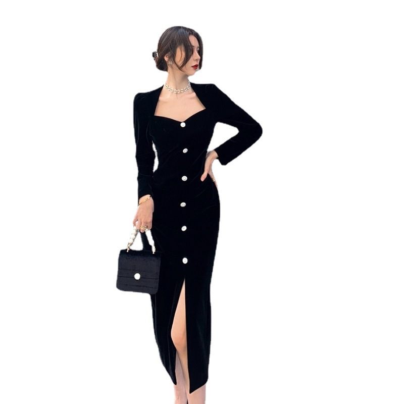 Dámske Elegantné Zamatové Šaty 2023 Malé Čierne