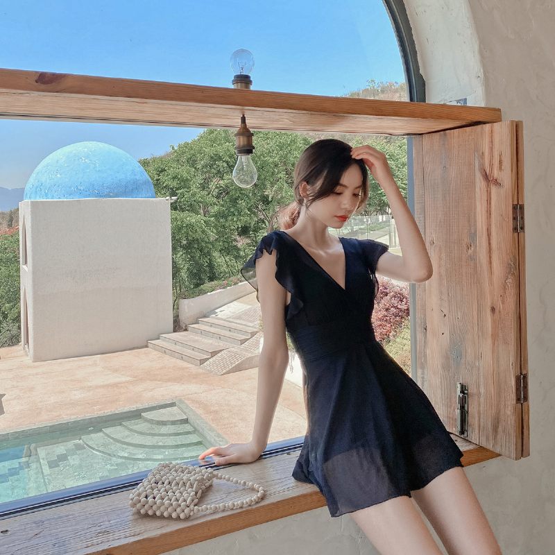 Dámske Jednodielne Plavky Vejárovité Čierne