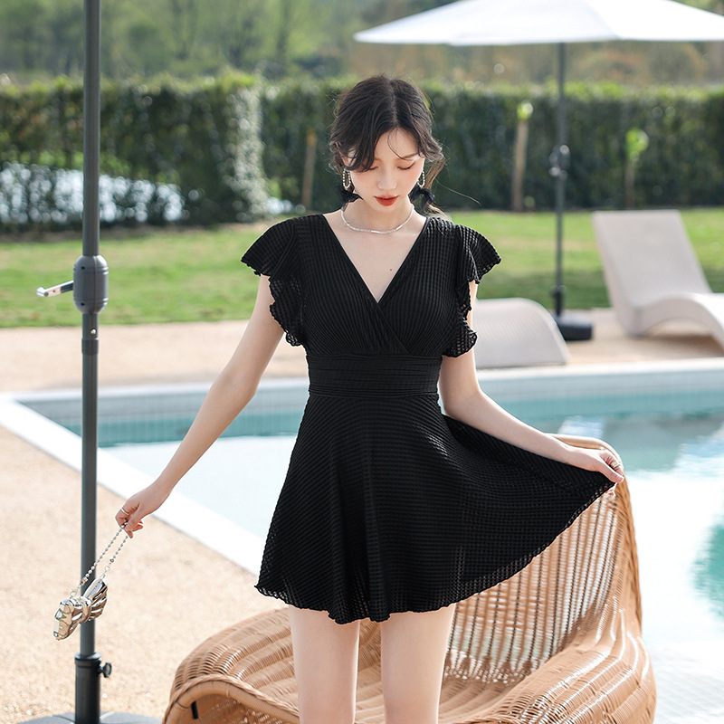 Dámske Jednodielne Plavky Vejárovité Čierne