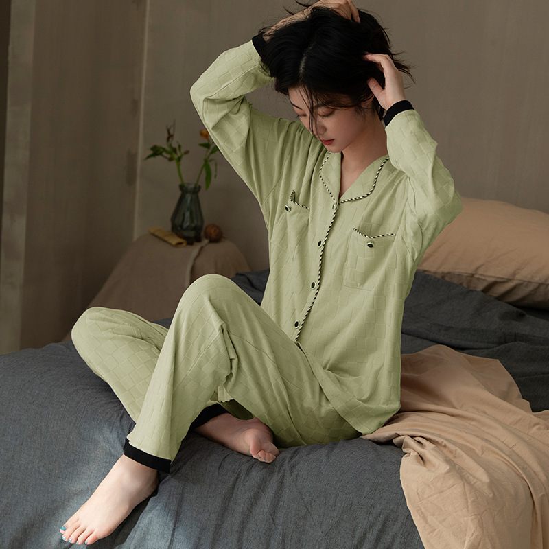 Dámske Pyžamo S Dlhým Rukávom Bavlnené Domáce Oblečenie Svieži Sladký Ležérny Oblek