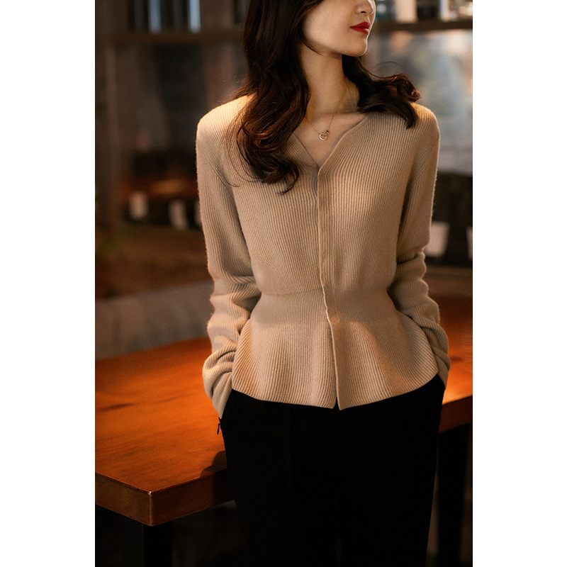 Dámsky Pletený Sveter Kardigan Lotosový List