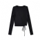 Dizajn S Okrúhlym Výstrihom Šikmý Golier Nosenie Povrazu Vysoký Pás Tenký Krátky Elastický Pletený Sveter S Dlhým Rukávom Pre Ženy