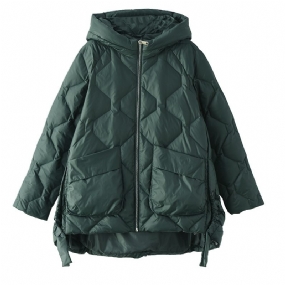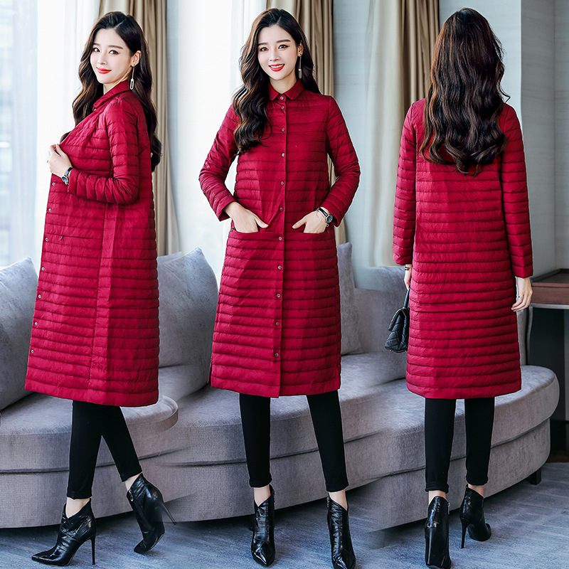 Módna Tenká Páperová Dámska Bunda Strednej Dĺžky Po Kolená Bez Čiapočky Zateplená