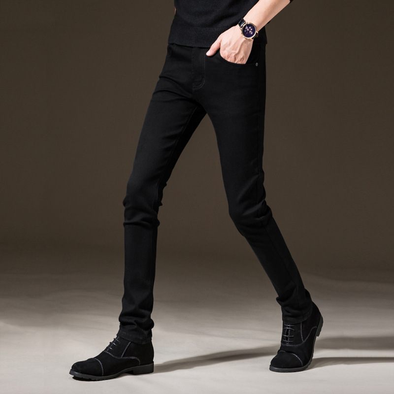 Pánske Čierne Džínsy Slim Fit S Otvormi Na Malé Nohy