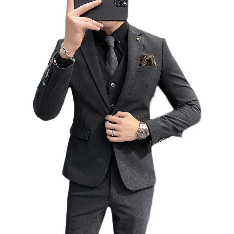 Pánske Obleky Jednofarebné 2023 Ležérna Móda Trojdielne Svadobné Šaty