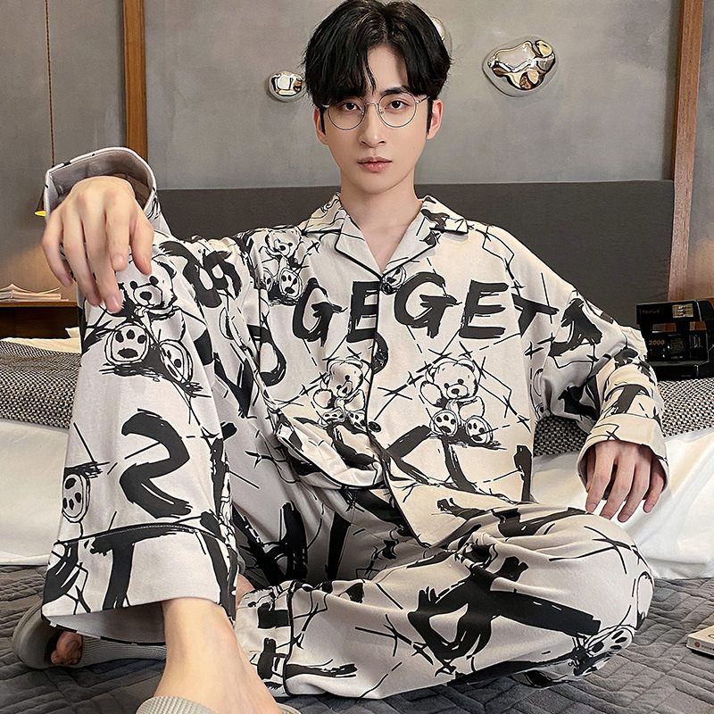 Pánske Pyžamo Nové Jarné A Jesenné Trendy Domáce Oblečenie S Dlhým Rukávom