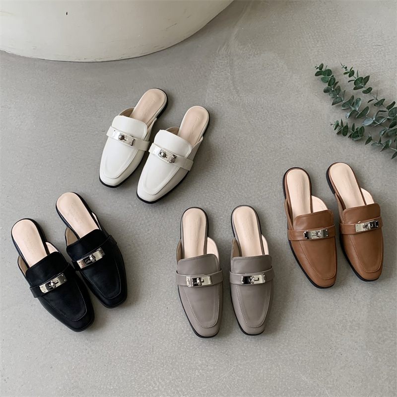 Papuče Dámske Leto 2023 Nové Retro Hranatá Hlava Šaty S Nízkym Podpätkom Topánky Kovová Pracka Baotou Muller