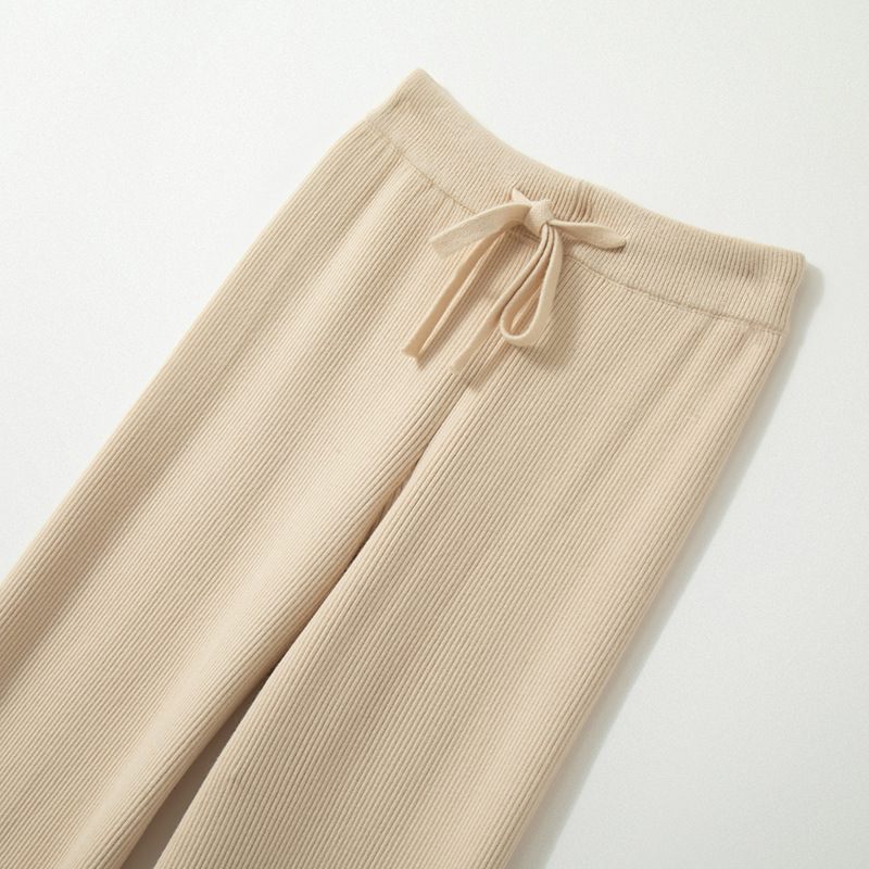 Pletené Široké Nohavice Dámy S Vysokým Pásom Rovné Trend