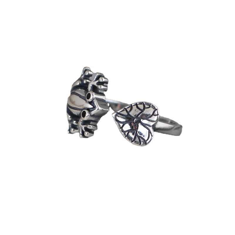 Retro Diamantový Žabí Prsteň Vyrobený Zo Starého Ženského Ukazováka S Otvoreným Lotosovým Listom