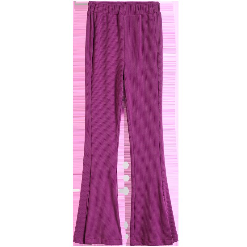 Sivý Rozparok Mierne Rozšírené Dámske Nohavice S Vysokým Pásom Ležérne Pletené Zvislé Pruhy S Rozšírením