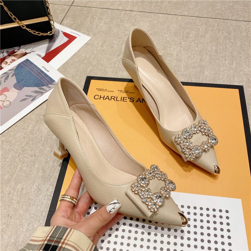 Štrasové Vysoké Podpätky Dámske Nové Jarné A Jesenné Ihličkové Profesionálne Pracovné Topánky So Špicatou Špičkou