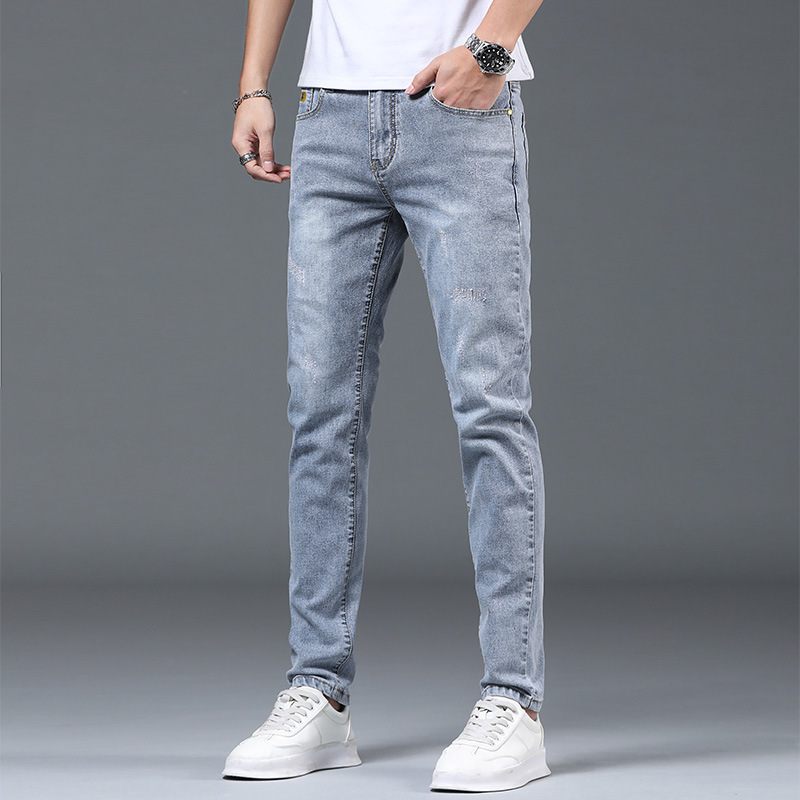 Svetlé Tenká Časť Slim-fit Džínsy Pánske Deväť Bodov Roztrhané Ceruzky Nohavice Trend